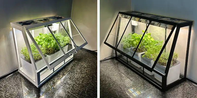 All-in-one solution with 2 grow lights for compact hacks. Perfect for small cabinets, shelves, or drawers – ideal for herbs, sprouts, and micro tomatoes.